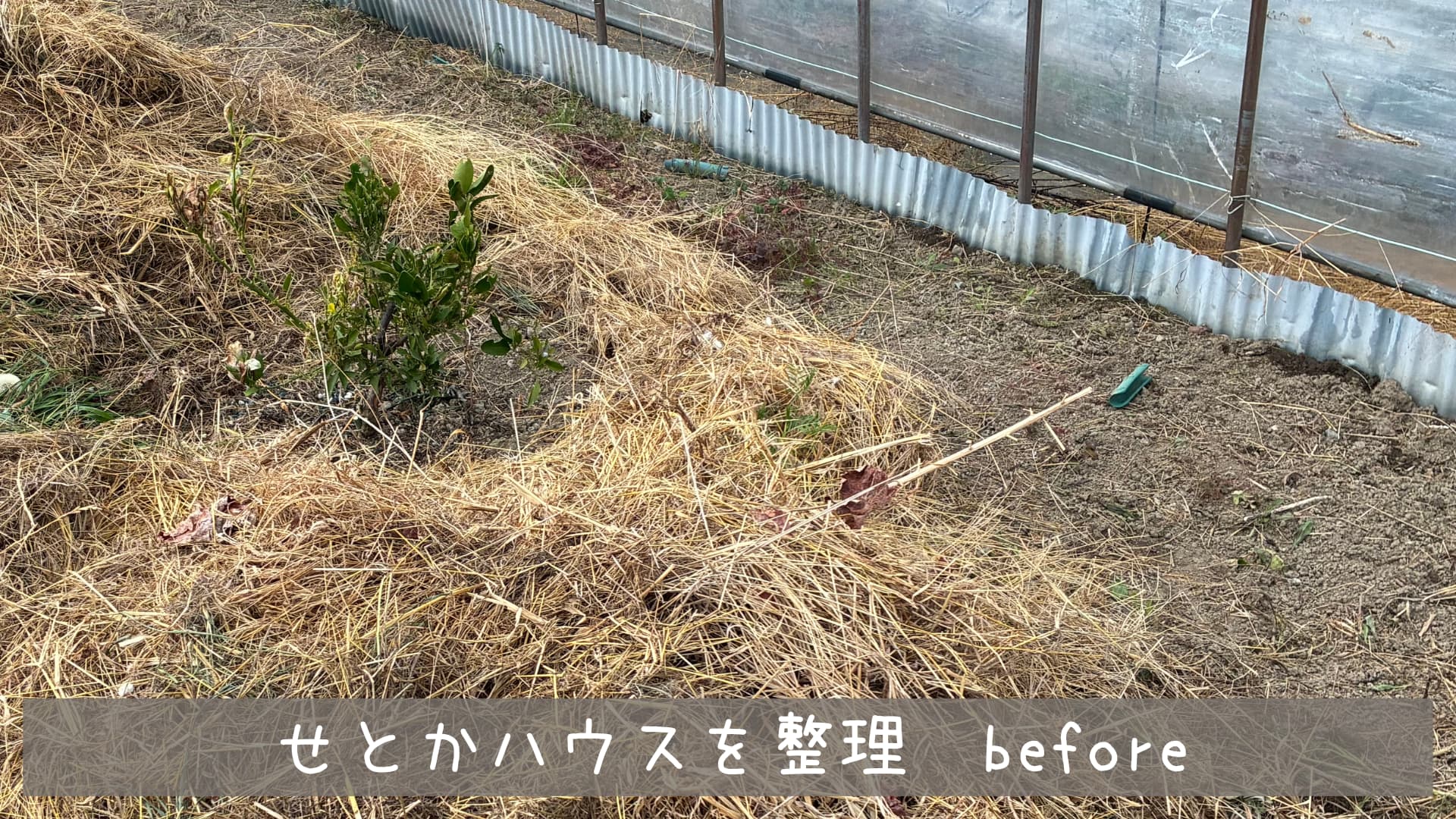 ビニールハウスを張り替えてせとかを植え、グランドカバーとしてヘアリーベッチを植えたり刈り取った雑草で雑草マルチを試したりしていました。そんな中、せとかハウスをもっと活用するためハウス内の整理をしましたので今回はその内容を記事にまとめていこうと思います。