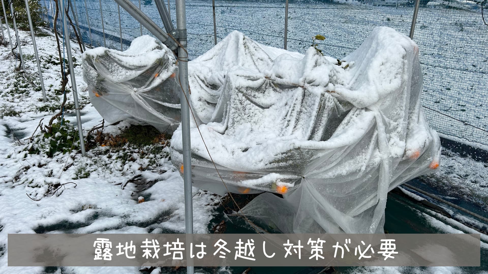 忘れてはいけないメリットとして「冬越しが容易」ということです。柑橘類は一般的に寒さに強くないため冬場に冷え込む地域では不織布を巻いたり根元に敷き藁をしたりして防寒対策をする必要があります。防寒対策をしていても霜に当たった部分の葉っぱは変色して多少はダメージを受けてしまいますが、ハウス栽培では不織布を巻いたりする必要がなくそのままでOKです。雪が降ろうがハウスの中では剪定作業などができるため効率よく栽培できることもメリットと言えますね。