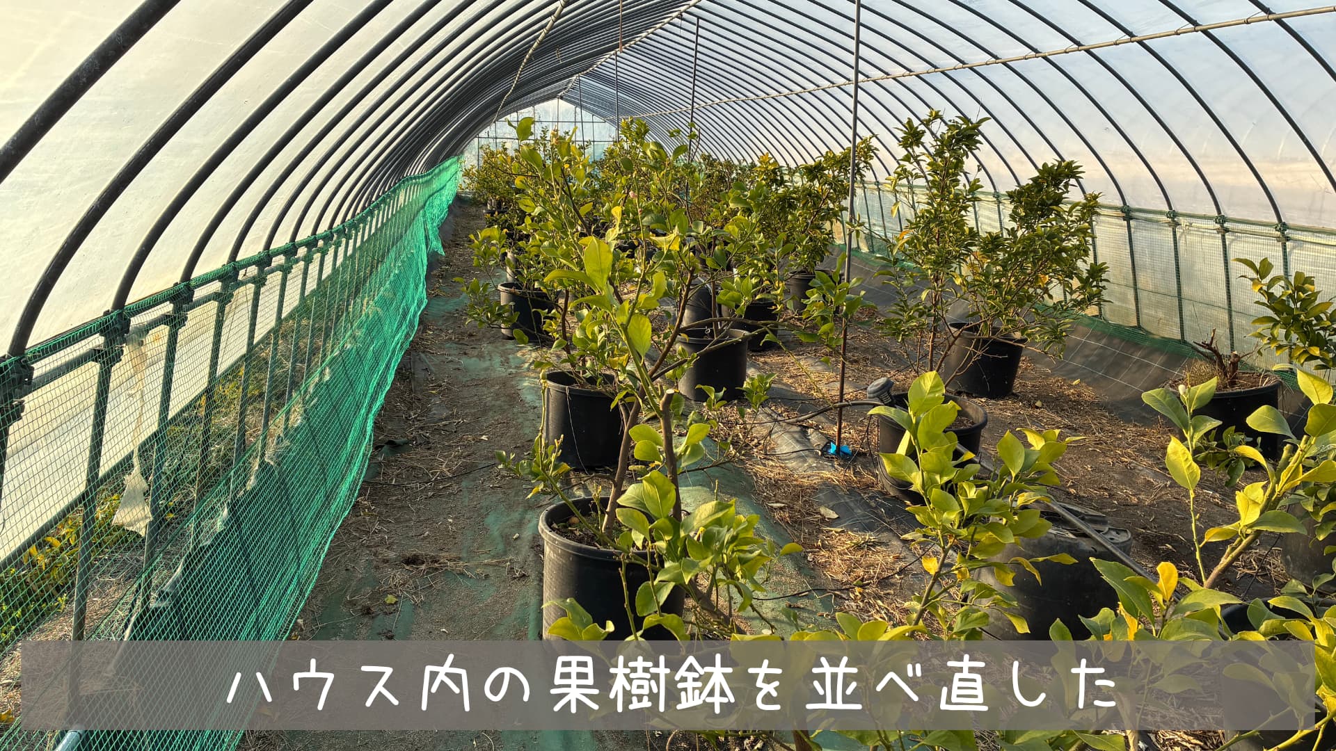 栽培している品種で不知火・ポンカン・レモンはそれぞれ1棟ずつビニールハウスで管理しており、今回はレモンハウスの話をしていこうと思います。