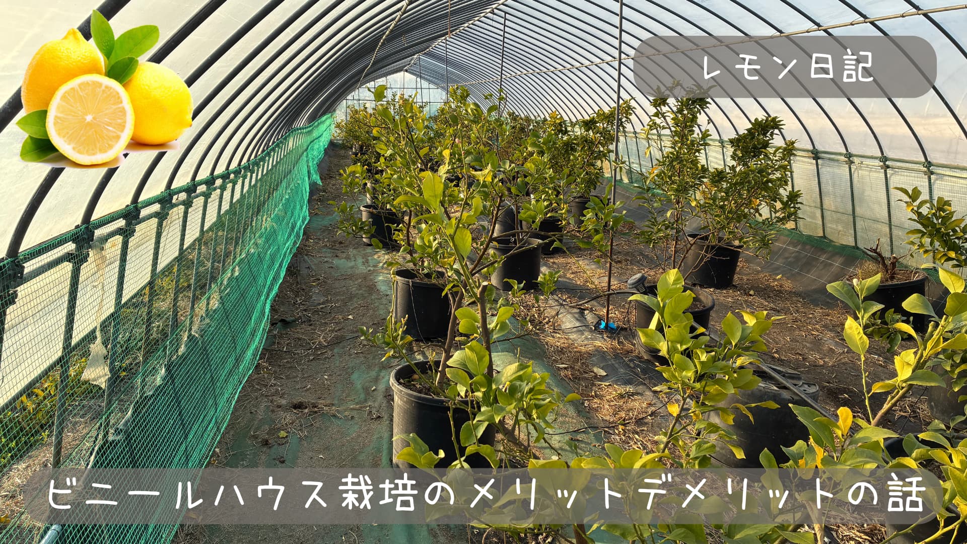栽培している品種で不知火・ポンカン・レモンはそれぞれ1棟ずつビニールハウスで管理しており、今回はレモンハウスの話をしていこうと思います。